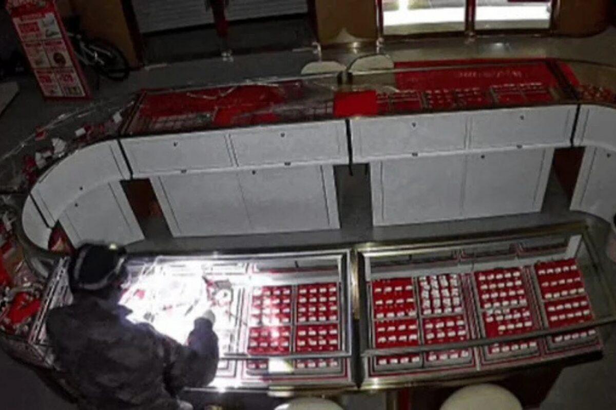 警方调取周边监控后确认,凌晨约3时30分,一名戴帽、护目镜及手套的男子在店外徘徊。他观察周围环境后拉开卷闸进入店内,在短时间内砸碎柜台,将大量黄金首饰装入背包。整个过程行动果断,显示嫌犯对目标和作案方式早有准备。